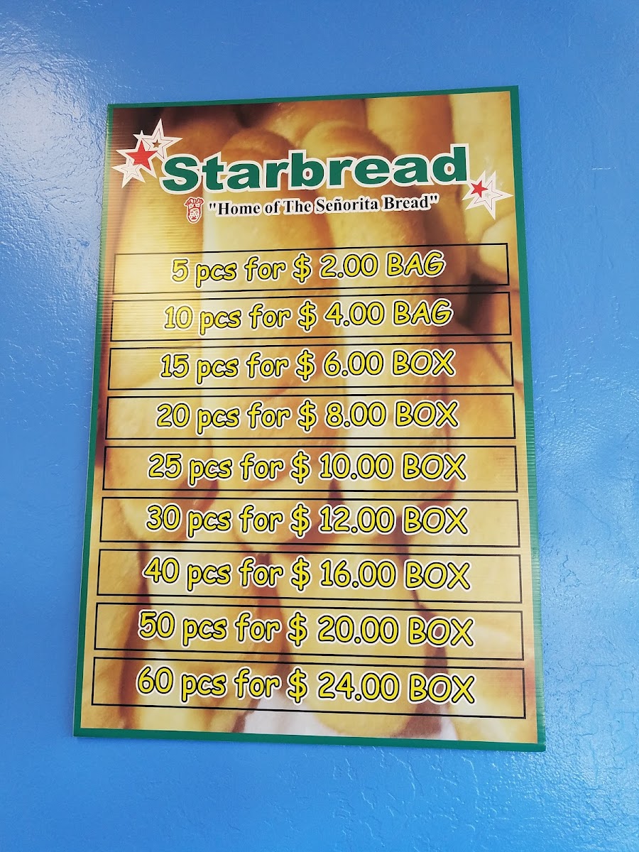 Starbread - Pleasant Hill Menu